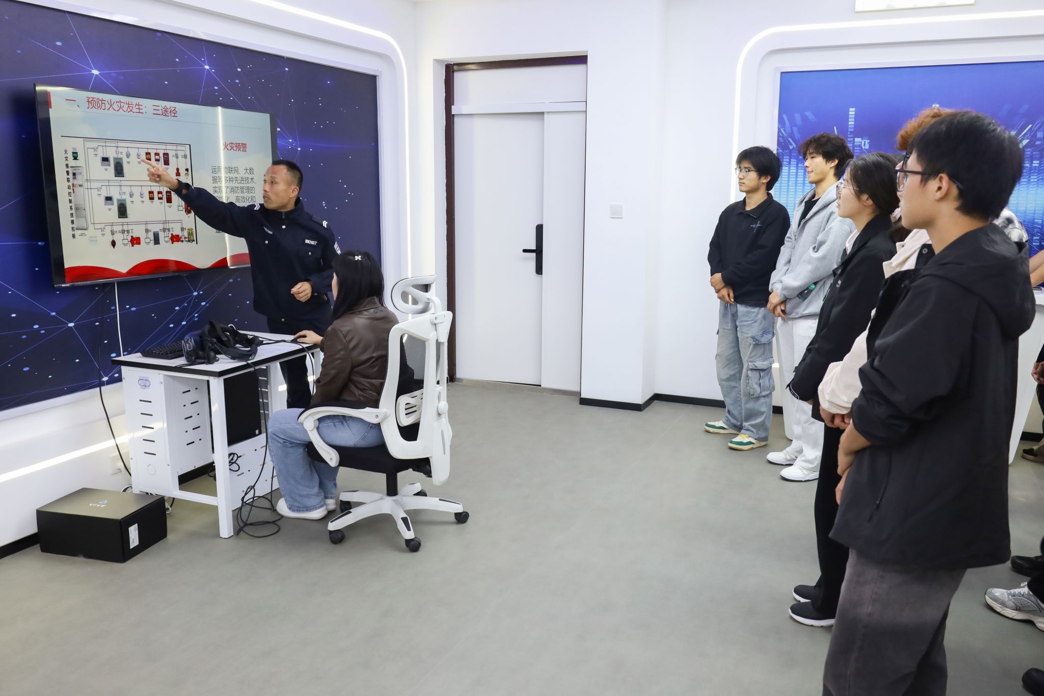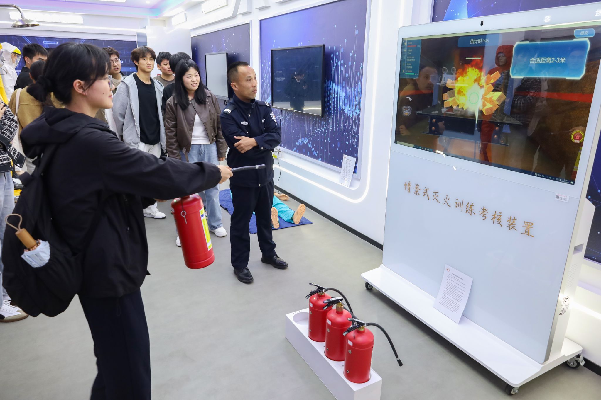 10月28日,学生校卫队在学校安全虚拟仿真中心组织开展消防安全培训演练活动。