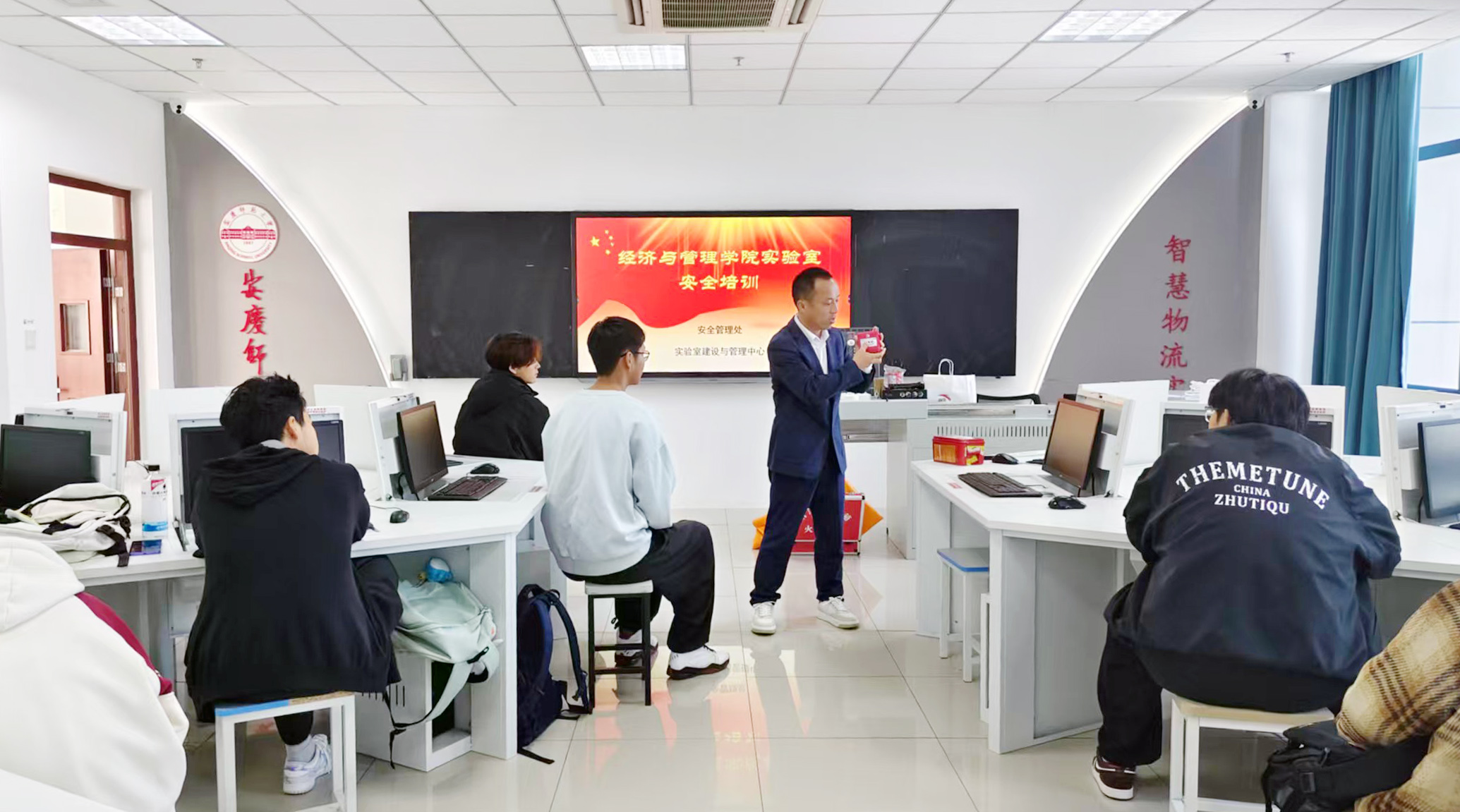 11月11日上午,安全管理处会同实验室建设与管理中心在经济与管理学院举行实验室安全专项培训演练活动,经济与管理学院实验室教师和学生代表参加培训演练。