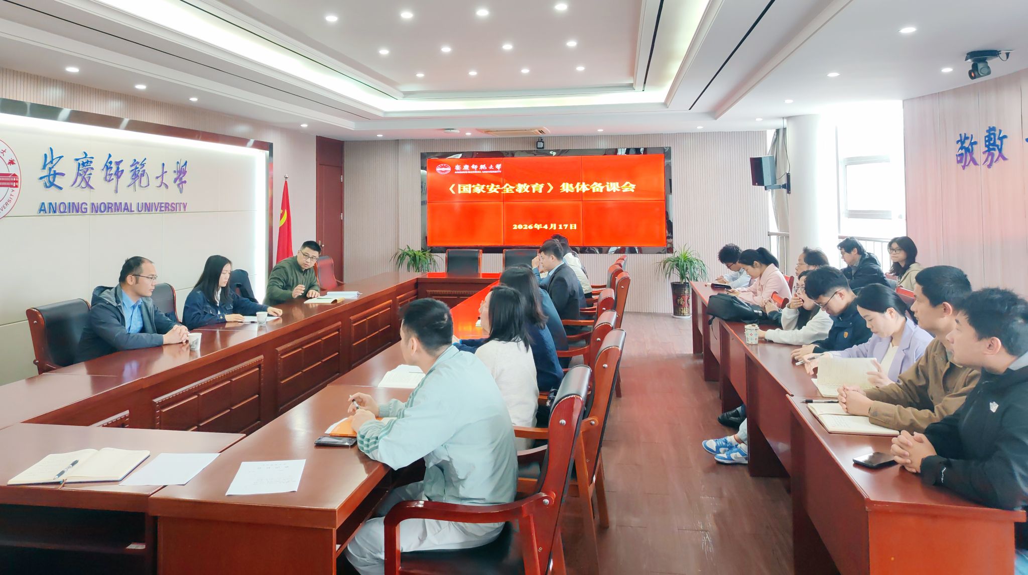 为进一步做好全民国家安全教育工作、提升教育教学成效,4月17日上午,国家安全教育教研室在行政楼421会议室组织召开集体备课会,安庆市政法干警应邀到会指导。会议由安全管理处处长何骏主持。